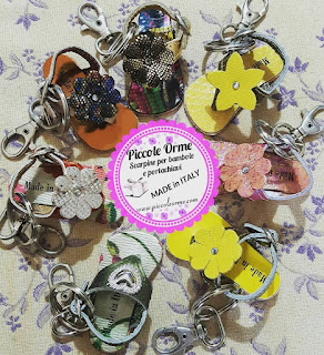Io ho avuto modo di ricevere due graziosissimi portachiavi realizzati in pelle tessuto e vero cuoio che sono la fedele riproduzione in miniatura di un sandalo infradito e di una ballerina!
